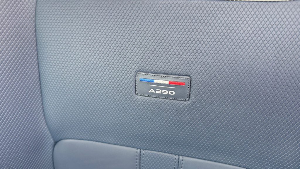 U A290 GTS pak není „francouzská identita“ jen výplod marketingového kravaťáka. V ceníku je například jako jeden z prvků uveden „Francouzská trikolóra na C sloupku”, celkově je kabina poskládaná tak, aby připomínala malý prémiový produkt: Od Nappa kůže přes měkčené plasty, skvělá sedadla (trikolora všude) až po specifický Alpine design infotainmentu.