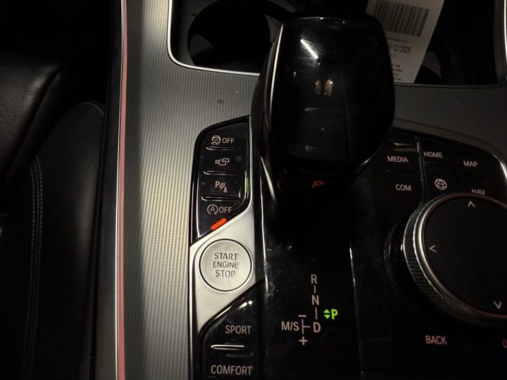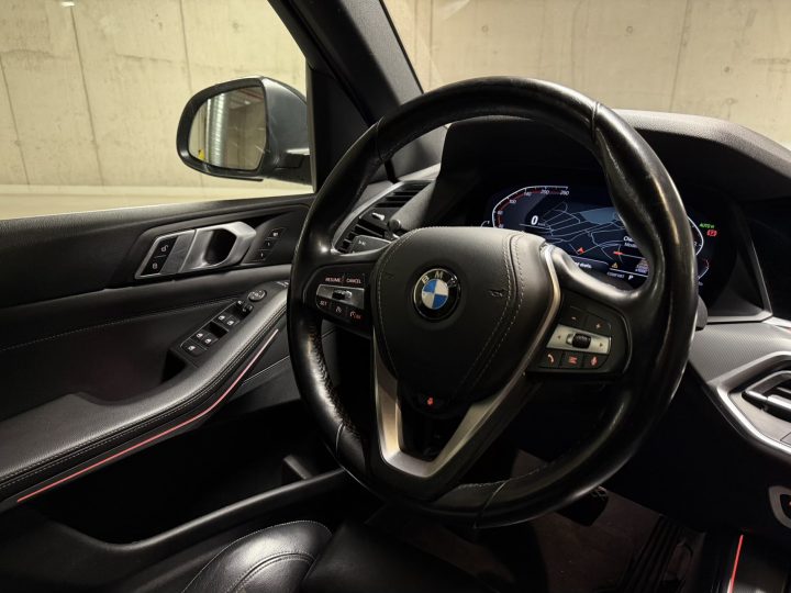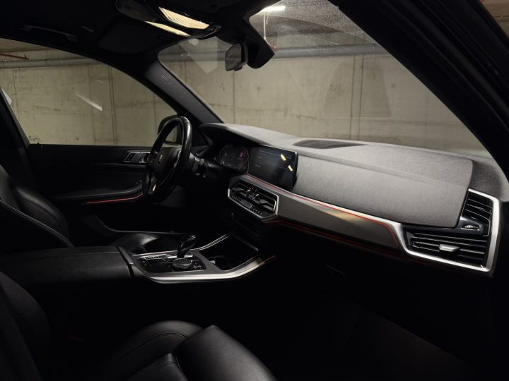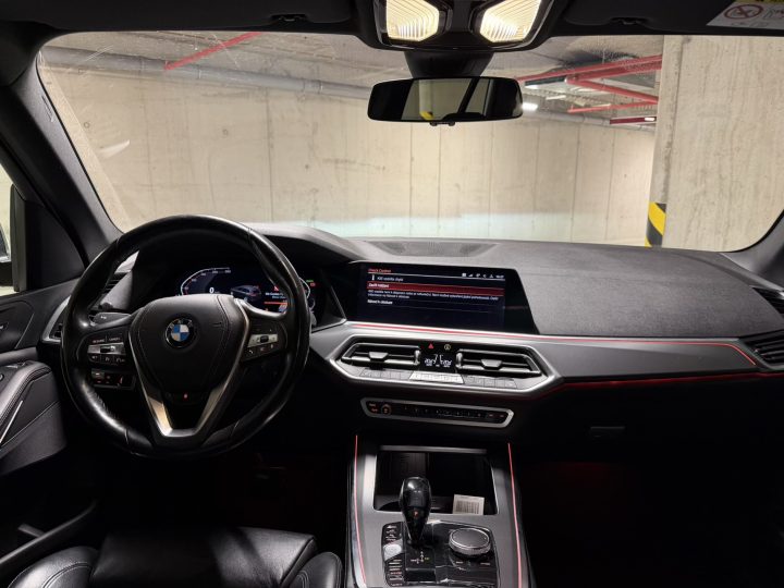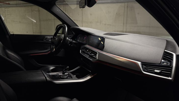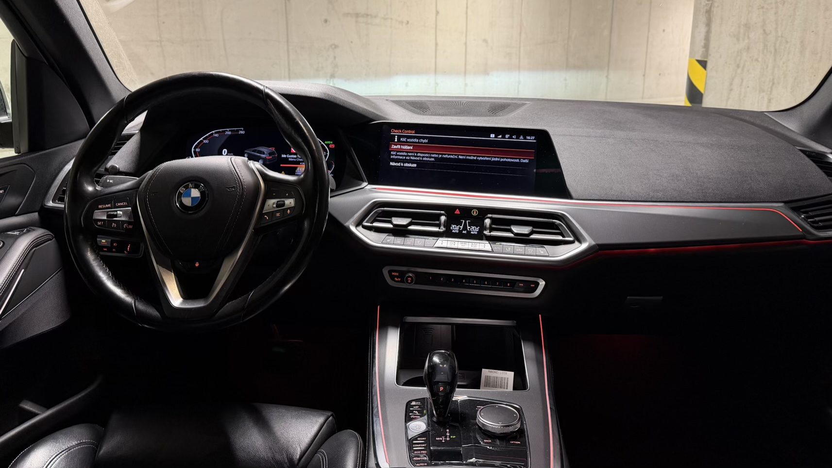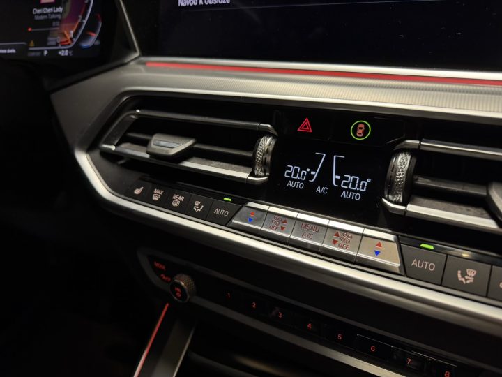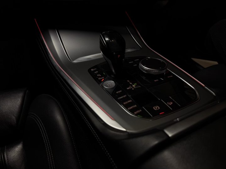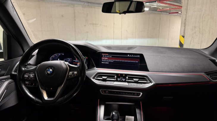 Černá kůže obecně sedí charakteru auta: vypadá elegantně, snadno ladí se zbytkem kabiny a v kombinaci s masivní palubní deskou a širokou středovou konzolí vytváří typicky BMW atmosféru – řidič je v autě usazený hluboko, obklopený ovladači a má pocit, že sedí v něčem opravdu bytelném. Materiálově je G05 o třídu dál než starší generace: plasty jsou měkčí, dílenské zpracování je obecně velmi dobré a kabina si umí i po vyšším nájezdu udržet solidní „tight“ dojem, pokud se o ni majitel staral.