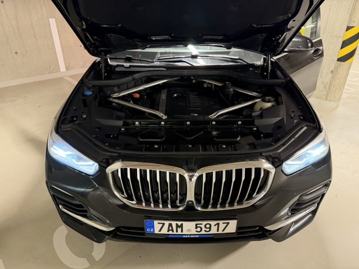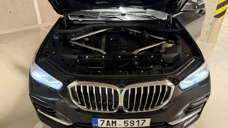 X5 generace G05 je totiž postavená na modulární platformě BMW CLAR (Cluster Architecture), tedy na stejném technickém základu jako řada 3, 5, 7, X3 nebo X7. To je důležité, protože CLAR není „SUV platforma“, ale univerzální architektura navržená pro vyšší tuhost karoserie, moderní elektronickou architekturu a současně pro dobré jízdní vlastnosti. U X5 je navíc cítit, že BMW u této generace hodně zapracovalo na tuhosti, odhlučnění a stabilitě ve vysokých rychlostech. Auto je velké, ale nepůsobí rozbředle.