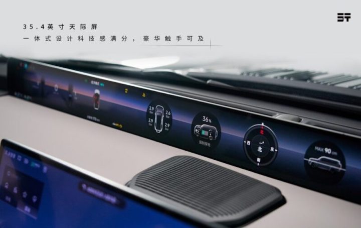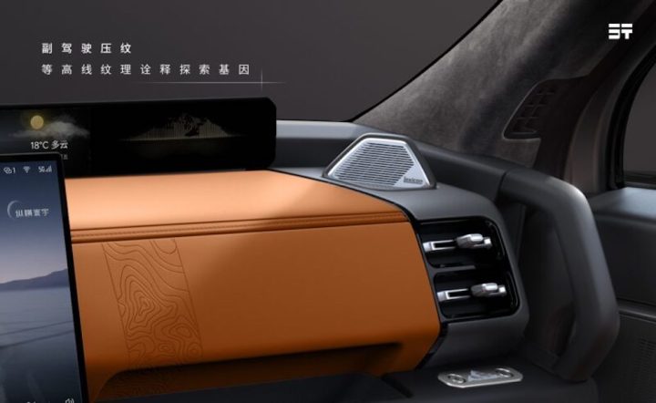 A interiér? Ten jde opačným směrem než „drsný terén“: je to luxus a technologie. Vůz je podle zdrojů řešený jako čtyřmístný (VIP uspořádání). Vpředu dominuje 15,6″ centrální displej* a za volantem 35,4″ širokoúhlý panel. Vzadu je dokonce 17,3″ stropní obrazovka a palubní lednice s rozsahem teplot od –6 °C do 50 °C. Sedadla mají ventilaci, vyhřívání i masáž. Tohle je typická čínská logika: udělat z velkého SUV něco jako „lounge“ na kolech.