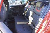 Co se týče interiéru, tak i v jeho případě jsem po prvním nasednutí do vozu celkem spokojený. Volant má sympatický rozměr i příjemný potah z perforované kůže (s výjimkou vršku věnce, kde je kůže hladká) s červeným prošíváním, které je stejně výrazné i na sedačkách tohoto vozu. Sedačky sice potažené kůží nejsou, zato jsou krásně tvarované, opravdu pohodlné a dokonce mají i solidní boční vedení, které jsem v ostřejších zatáčkách ocenil. I když mají přední sedačky hodně sportovní tvar, ve finále jsou spíše pohodlné, než ryze sportovně dimenzované. Jízda na dlouhé trasy je v nich příjemná.