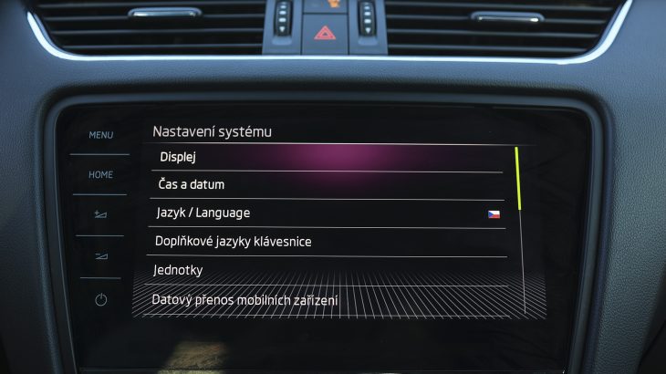 Infotainment v Octavii RS 245 hodnotím jako nadprůměrně kvalitní a adekvátní charakteru vozidla. V kapličce za volantem zatím ještě nenacházím celodisplej, ale naštěstí dva opravdu sportovně se tvářící analogové sektory (otáčkoměr s teplotou motorového oleje a rychloměr se stavem palivové nádrže), mezi kterými je menší displej, který zobrazuje zásadní informace o jízdě a vozu samotném. Volím si mezi nimi pomocí kvalitních multifunkčních tlačítek na volantu s moc pěknou odezvou, mezi kterými mě baví především otočné ovládací válečky. Jedním z nich se mimochodem výborně pracuje s hlasitostí sound systému. A ještě, že tak! S dotykovými tlačítky umístěnými vlevo od centrálního displeje se naopak hlasitost ovládá příšerně (odezva i umístění).