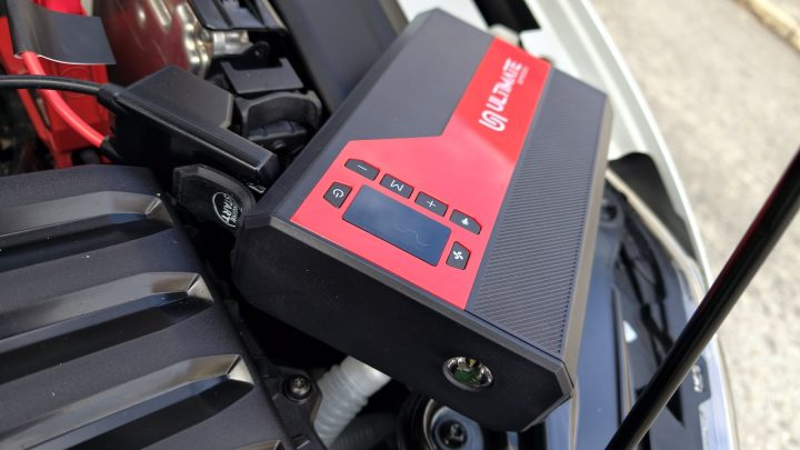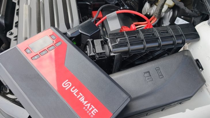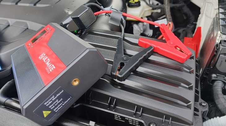 V takové chvíli vytáhnu z kufru malou krabičku z Lidlu, Ultimate Speed UMAP 12000 C4. Tenhle startovací zdroj za zhruba 1 299 až 1 499 Kč podle českých cenových agregátorů umí poslat do motoru 300 A startovacího proudu a krátkodobě až 500 A špičky.